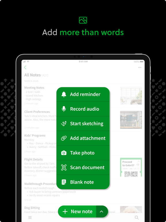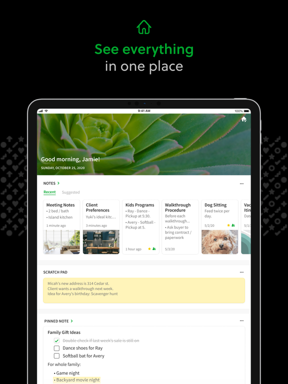 • Write, collect, and capture ideas as searchable notes, notebooks, checklists, and to-do lists.