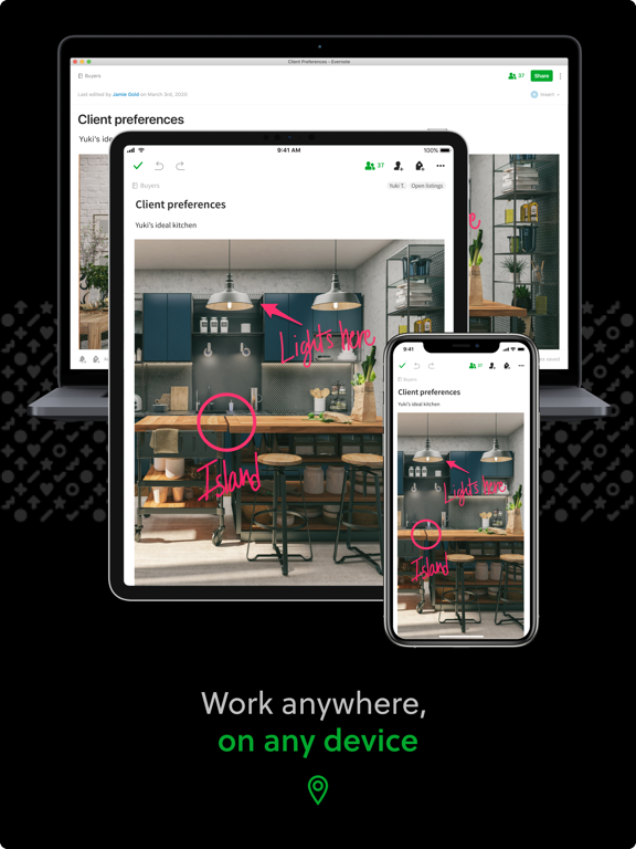 Evernote syncs to all your devices, so you can tackle action items on the go. Express yourself clearly with easy-to-use formatting options, and find what you need quickly with filtered searches and results as you type.