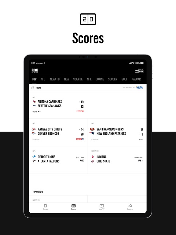 • Stream all FOX Sports events with live stats, recaps, and highlights of every big moment.