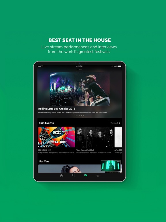 • Live video streams of festivals and concerts from around the world