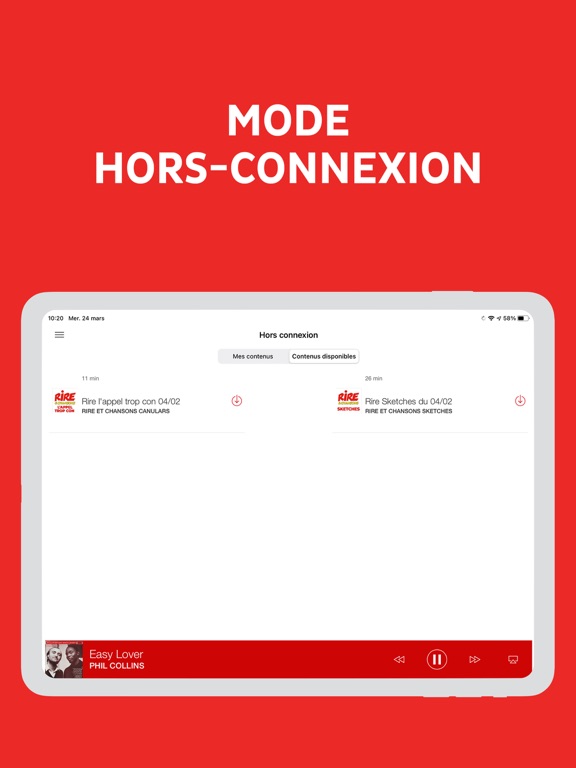 • Téléchargez votre webradio préférée pour écouter vos sketchs préférés même sans réseau grâce au mode Hors connexion !
