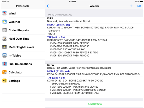 Get TAF- and METAR-Data directly from National Weather Service (NWS). Select airport from list of more than 6000 airports.