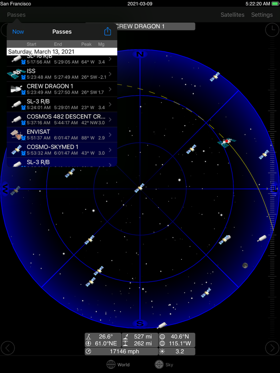 Real time satellite tracking on your iPhone, iPad or iPod touch. Find out when and where any satellite including the international space station can be seen from any location in the world. Easily identify satellites seen in the sky with real time tracking.