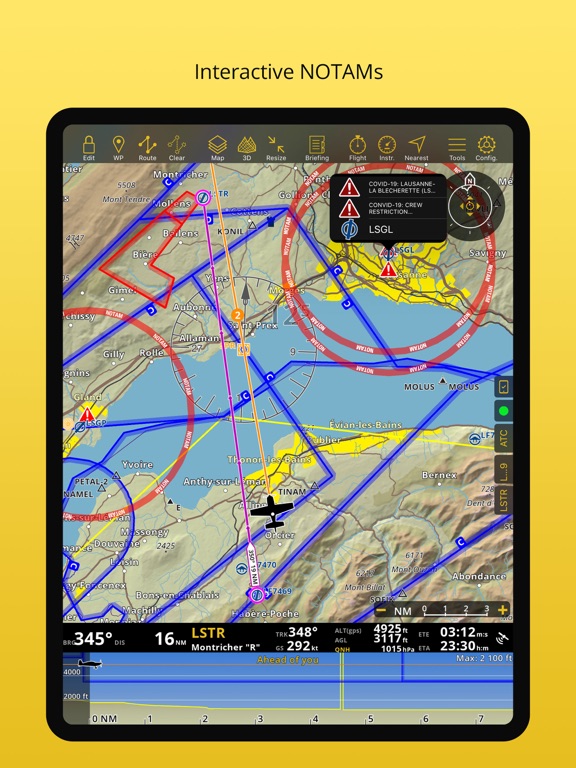 We provide a worldwide selection of free and paid charts including the main ICAO charts. The Profile View gives all terrain information for better situation awareness and safety enhancement. The 3D view provides enhanced terrain awareness and is compatible with georeferenced approach charts.