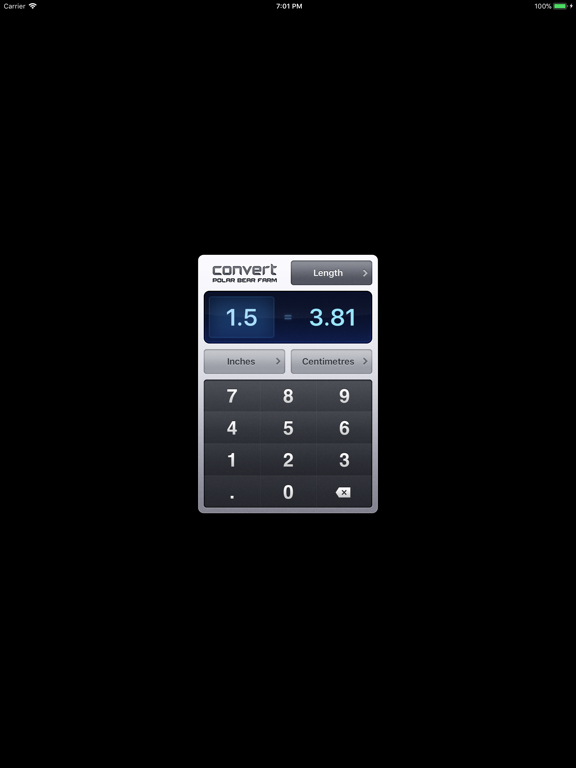 Convert is an intuitive and simple to use unit converter. It's beautifully designed, and a joy to use, all this achieved without compromising usability. It offers a wide range of categories and units to convert between, all from a single screen.