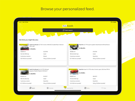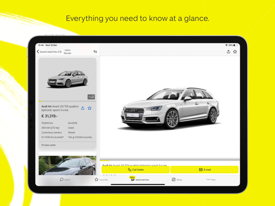 - Individual arrangement of results (price, registration date, mileage, performance and more)