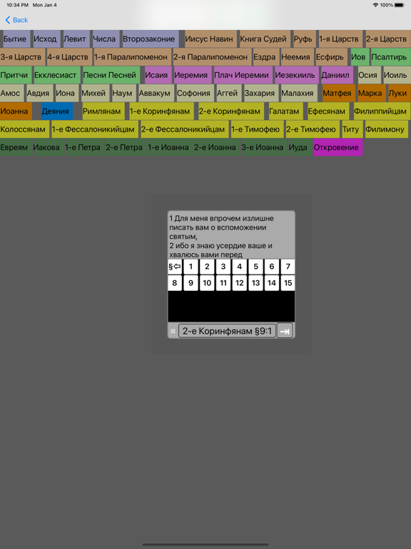 This application contains Библия (Russian Bible): "the Old Testament" and "the New Testament".