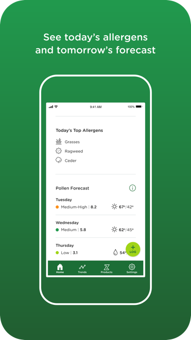 When you first download the app, we’ll provide you with the pollen level in your area based on your zip code. Each day for 5 days, you’ll track your symptoms in the app.