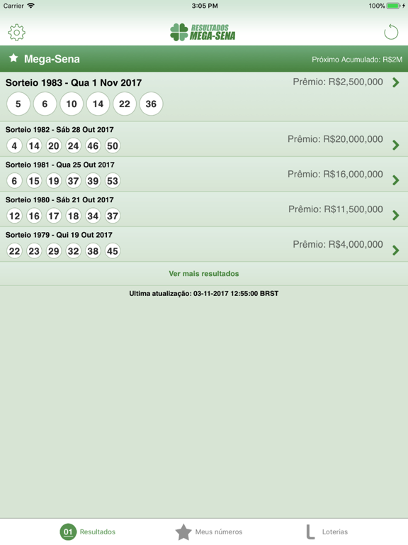 Se você é do tipo que se esquece de checar os números da loteria o Resultados MegaSena é perfeito para você. Tenha acesso aos sorteios anteriores e confira com seu jogo mesmo que tenha esquecido o dia do sorteio sem precisar procurar em sites ou perguntar para os amigos.