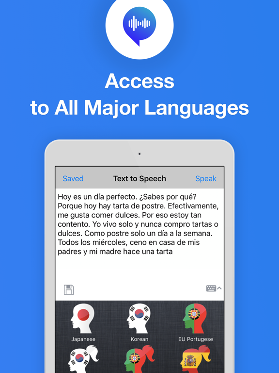 Type in or copy and paste text and listen with human quality text to speech. Simply enter any text and tap speak to instantly speak the words aloud.