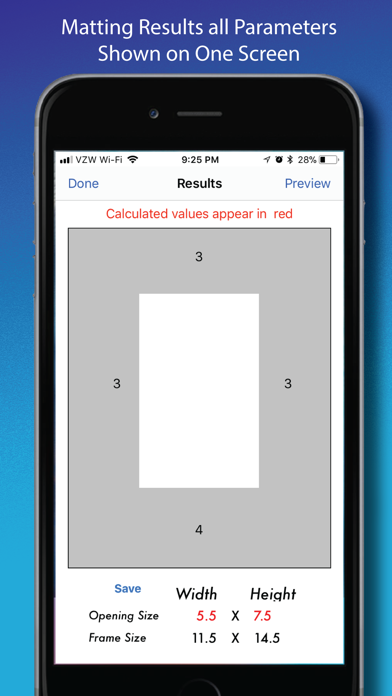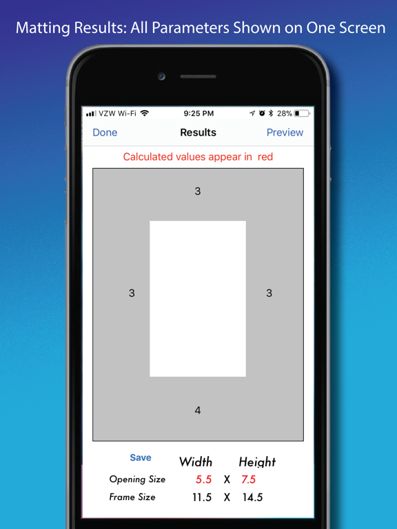While the math to preform these calculations is easy, it is also easy to make calculation errors. When mistakes are made they are often not caught until after the mat is cut. With the cost of mat board currently going between $5 to $50. The savings received from getting the calculations correct is very valuable. Capture this value by using the Matting Calculator today.