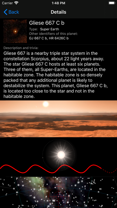 Exoplanets are planets orbiting stars beyond our own solar system. This app allows you to explore all discovered exoplanets, their measured physical properties, their location in the night sky, and their host stars. An interactive model shows you the entire observable universe, all the way from the surface of the Earth to the cosmic microwave background. This app has been developed by a professional astronomer.