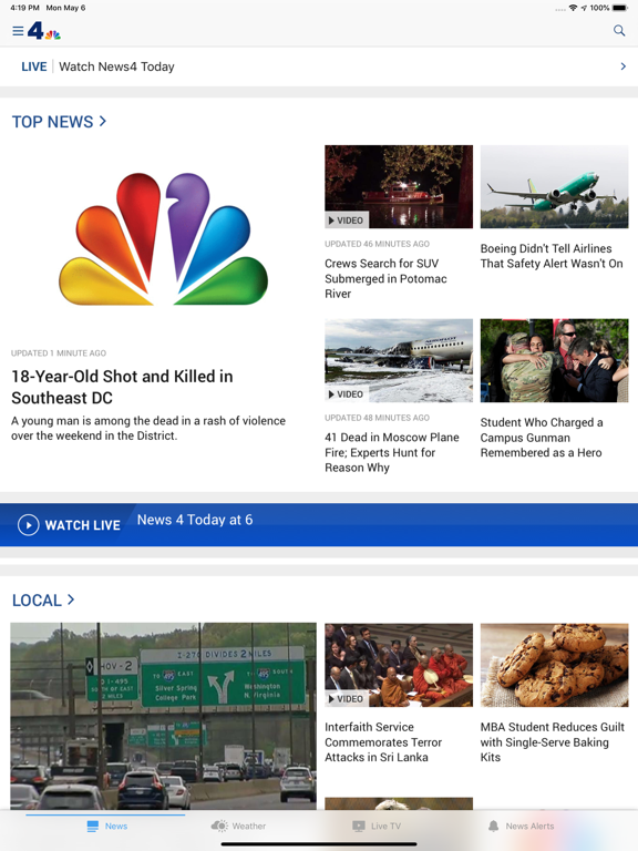 The NBC4 Washington app connects you with weather, local news and breaking news in Northern Virginia, Maryland and Washington, D.C. Plus, watch NBC4 live, including the TODAY show, NBC Nightly News and your favorite NBC shows. We’re always Working 4 You.
