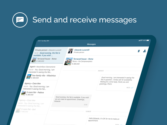 • You can publish a listing for sale or rent of any type of property (houses, apartments, penthouses, villas, chalets, garages but also offices and stores, commercial spaces and warehouses) directly on the app. You can also create listings for room shares for students or offsite workers.