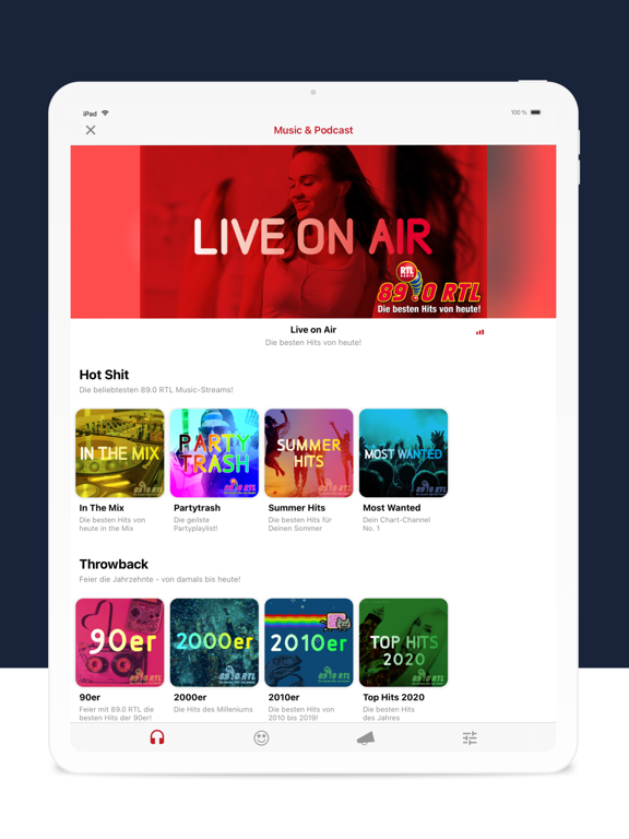 Das ist ja Appgefahren! Tauche ein in die Musikwelt von Deinem Lieblings-Radiosender 89.0 RTL und hol dir kostenlos hier die offizielle App für Dein Smartphone! 89.0 RTL spielt dir die besten Hits von heute und noch viel mehr! Entdecke die weiteren Webradio Channels von unserem Sender und hör unter anderem die 89.0 RTL In the Mix DJ Playlist nun rund um die Uhr auf deinem eigenen Kanal als Stream.