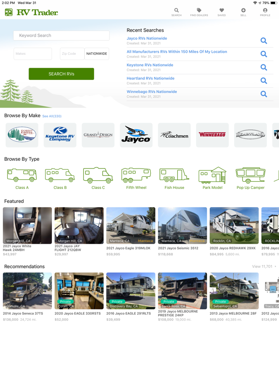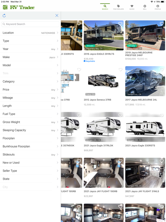 The new RV Trader application is GPS-sensitive and puts more approximately 90,000 new and used RVs at your fingertips. Find a dealer in the RV Trader Dealer Network near you or search the RVTrader for RVs by type, new/used condition, price range and model year - in a specific ZIP code or by location! View multiple RV and dealer locations on enhanced Google Maps and quickly access driving directions. Each RV listing provides a detailed description, including length and stock number, along with multiple photos of the RV for sale. Look for YouTube videos on select listings. Contact the seller of the RV immediately by phone or email - or, map the driving directions to the dealership and be on your way! Want to send the RV to a friend or save it in your favorites? You can do both with the RV Trader iPhone application.