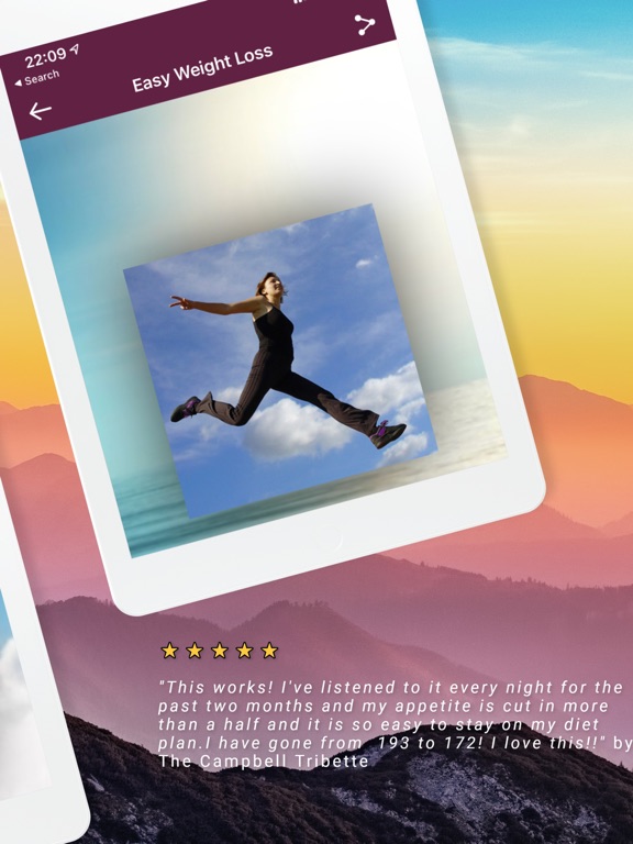-Free access to all Harmony Hypnosis apps when you subscribe to Easy Weight Loss. This allows you to continue to use Harmony Hypnosis to improve your life in all kinds of ways long after you’ve lost the weight.