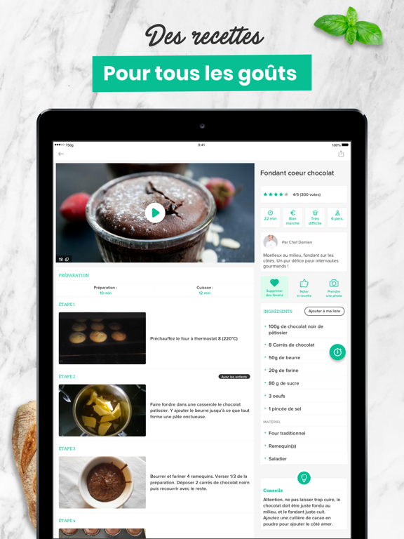 750g vous propose l’une des plus riches applications de recettes de cuisine.