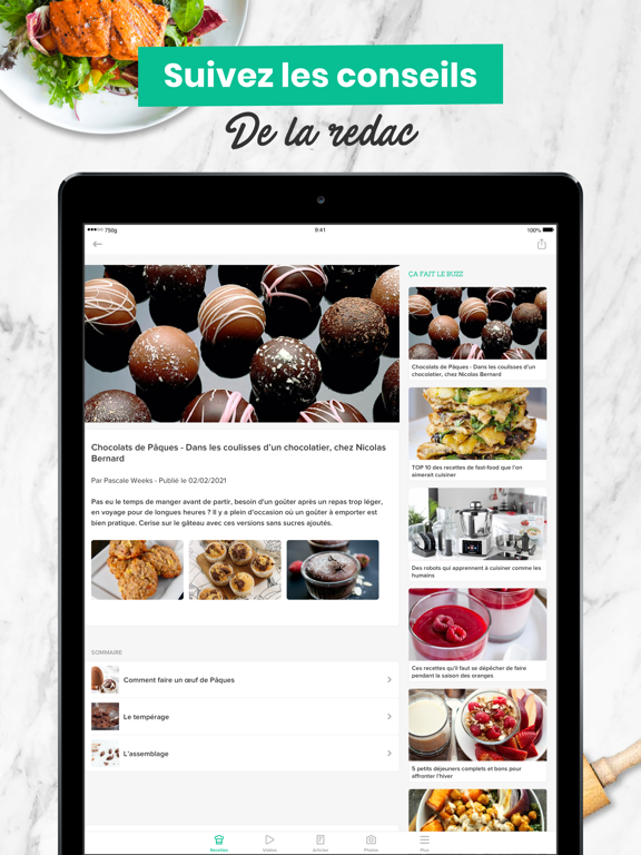 - Envoyez des photos de vos propres recettes pour les retrouver sur les apps et sites 750g.