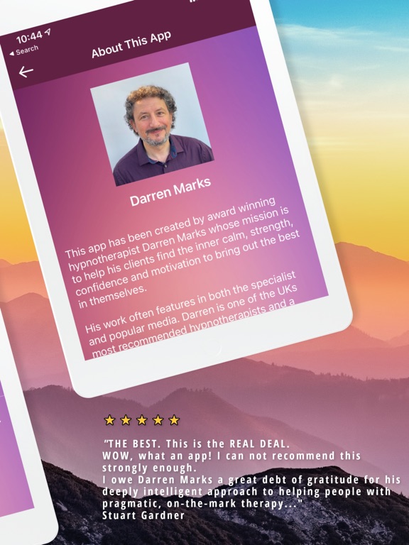 "Absolutely Sublime...I personally have a lot of experience doing this kind of suggestive work in the context of performance workshops and so my standards are pretty high. I've been exploring many hypnosis/affirmation apps, and I have to say that Darren's work is head and shoulders above the rest...Trust me you'll save thousands on psychotherapy. You can make tremendous progress with these tools."