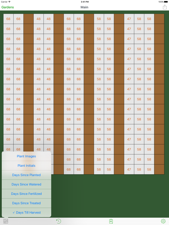 * Create a garden: Choose the number of rows and columns in your garden. The dimensions are up to you. Create and track as many gardens as you want!