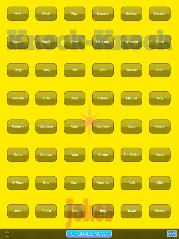 Do you love knock knock jokes? Tired of finding apps that make you read them? Want an app where they are performed for you? By a hilarious comedian! Then this is the app for you kid! 108 Knock Knock jokes coming right up! Press a button hear a joke! It's that easy! all you have to do is download it!