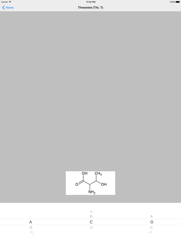 * Codon Picker -- allows you to select a particular codon to see the name and structure of the corresponding amino acid. You can see amino acid properties by clicking on the amino acid structure.