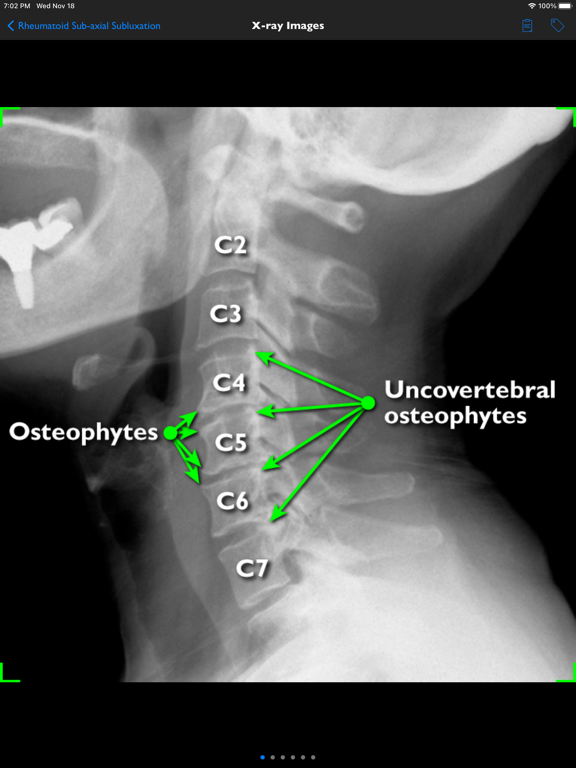 • Pathology - compression fracture, congenital spinal stenosis, degenerative disc disease, disc circumferential tear/protrusion/sequestration, facet joint syndrome, foraminal stenosis, OPLL, rheumatoid facet joint spondylitis/AAS/SMO/SAS, spondylosis deformans, and lytic spondylolisthesis