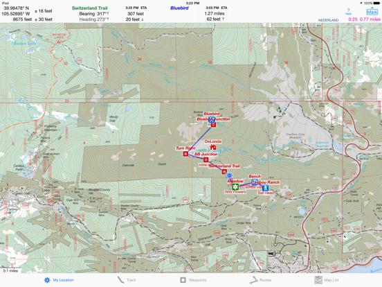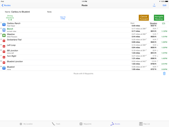 Set a quick GoTo waypoint or a full route & see the heading, direction, distance, elevation change & Estimated Time of Arrival at your destination & intermediate waypoints along the trail.