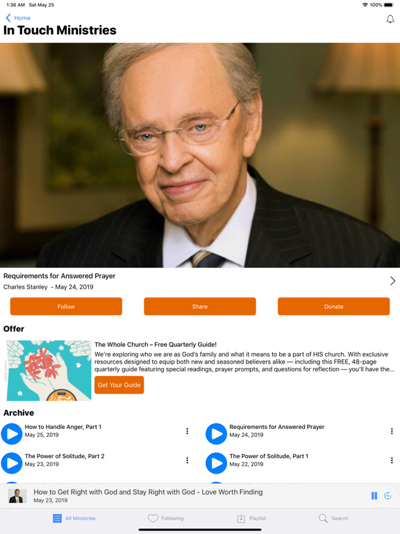 - Stay up to date with the latest ministry broadcasts by following your favorite ministries.