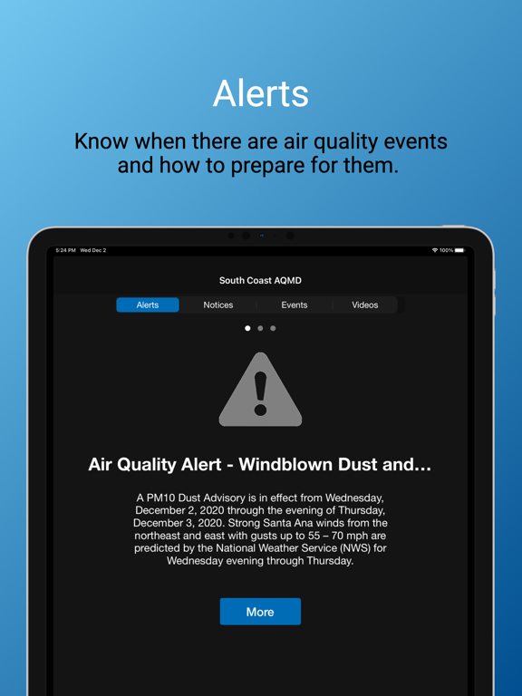 The South Coast AQMD app is the official air quality app for residents of the South Coast Air Quality Management District, which includes major portions of Los Angeles, Orange, San Bernardino and Riverside counties. Air quality experts provide real-time and forecasted air quality information using the highest quality data and scientifically validated methods.