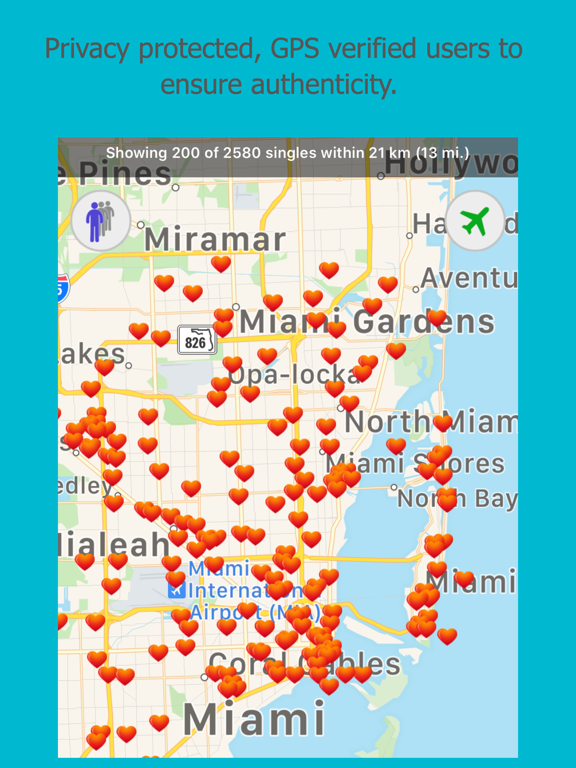 - 100% location-based, 100% GPS dating - verifies that users are real.