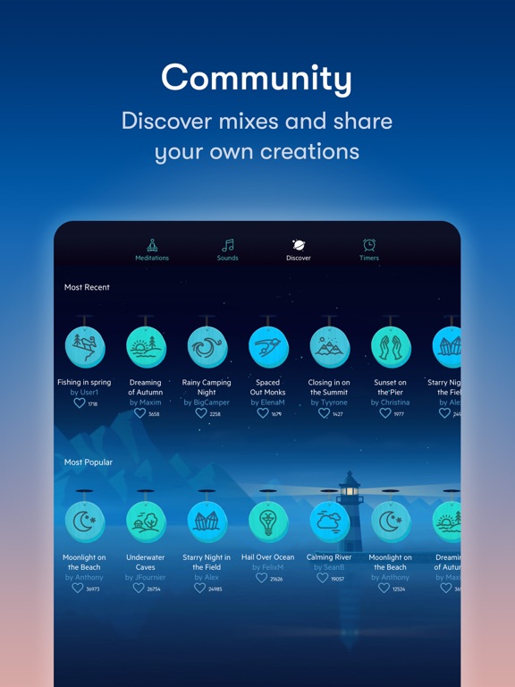 - Community Melodies: Find and share sound mixes created by users like you from all around the world.