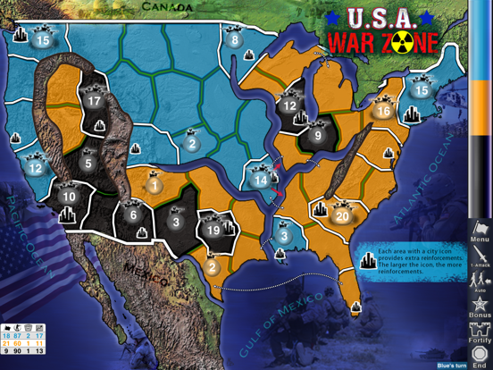 Lux USA has a full map of the United States of America. Battle for control of New York City, Chicago, D.C., Minneapolis, St. Louis, Atlanta, New Orleans, Houston, Phoenix, Salt Lake City, Denver, Seattle, San Francisco, Los Angeles, and more!