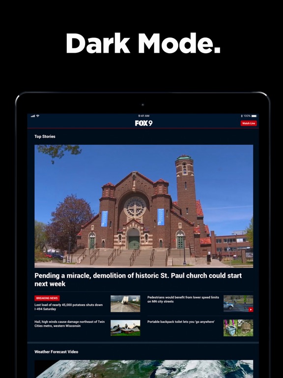News doesn't wait, why should you? Take FOX 9’s award-winning news everywhere you go! Our app connects you with top stories in and around the Twin Cities — complete with breaking news alerts, live video, and real-time weather forecasts for Minneapolis or St. Paul.