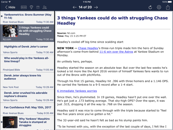 Get fast and reliable news for your New York Yankees on from over 20 sources! Read inside the app, in your browser, and e-mail or Tweet links to your family and friends.