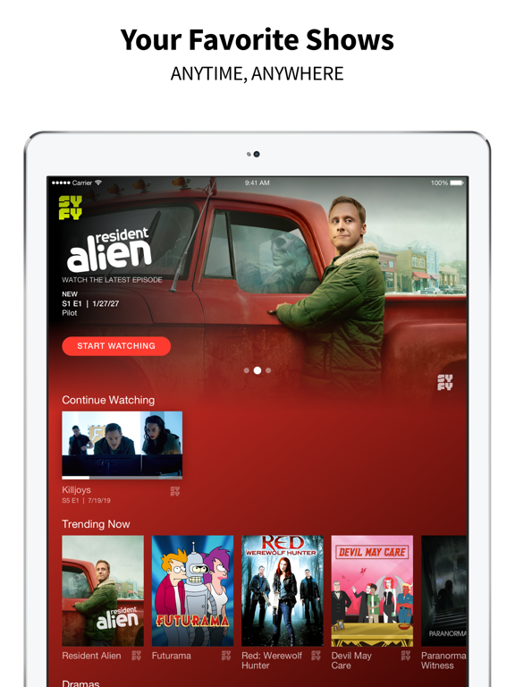 The SYFY app is the best place to catch up on the most recent season of your favorite shows, watch live TV, and stream movies and past season content! Download the SYFY app now to watch full episodes of Resident Alien, Wynonna Earp, Van Helsing, Killjoys, Futurama, AND MANY MORE!