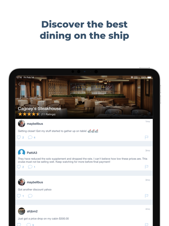 Inside, you'll find boatloads of content for your cruise ship and ports. You'll get to know your vessel top to bottom using our detailed deck maps, and user-submitted pictures. You can visit your ports well before stepping on board with user tips and reviews, so you’re ready to make the most of your limited time ashore. Got a question? Our cruise forums are packed with happy users, eager to share their cruise knowledge and tips.