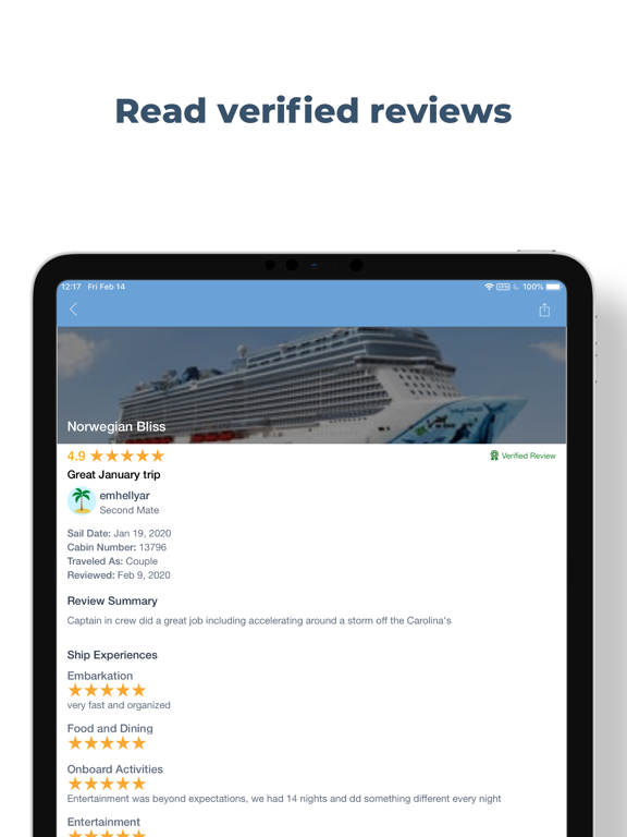 Shipmate is the ONLY Cruise App you can use before, during, and after your cruise! AND it works for every cruise line, not just one. Save and share your entire cruise history and learn everything you need to know about your upcoming sailings. Here are just a few things you can do with Shipmate: