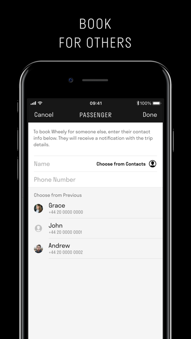 The app allows you to request a chauffeur for yourself or on behalf of other passengers.