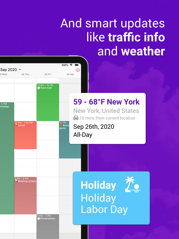 ● Works without setup for all calendar services supported by iOS (iCloud, iCal, Google, Exchange, Outlook, CalDAV, Birthdays, Subscriptions)