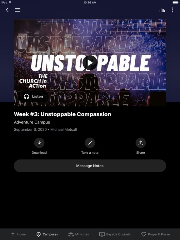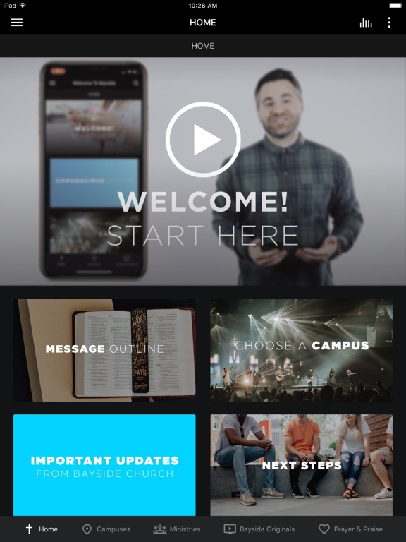 This app will help you stay connected with Bayside Church. With this app you can: - Watch or listen to live and past messages - Stay up to date with push notifications - Share your favorite messages via Twitter, Facebook, or email - Download messages for offline listening