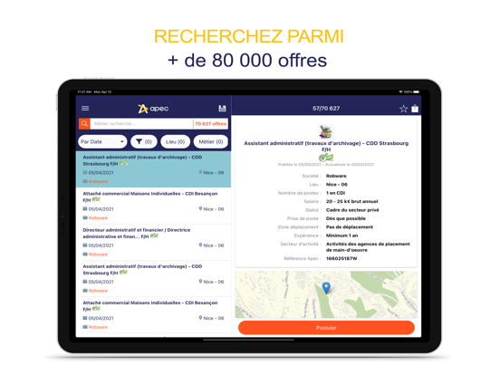 - Postuler en quelques clics où que vous soyez sans quitter l’application.