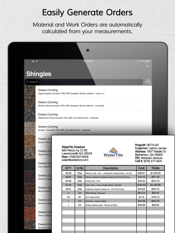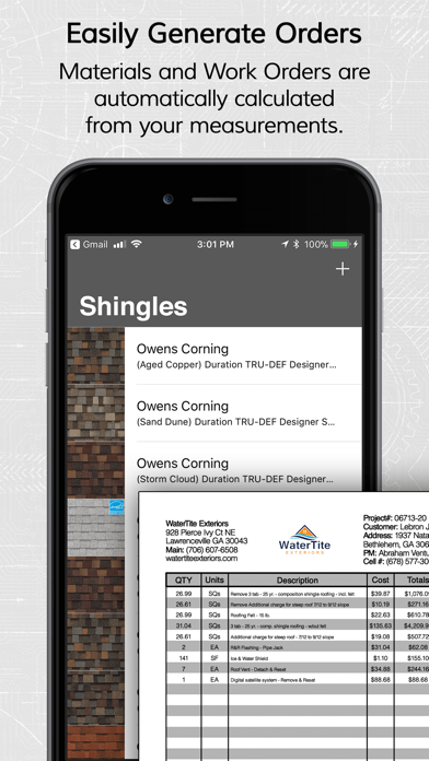 • Pitch, area, and length breakdowns with 3D roof diagrams