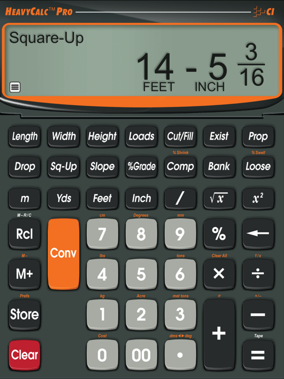 Yard, Feet-Inch-Fraction, Metric Heavy Construction Math Calculator from Calculated Industries®