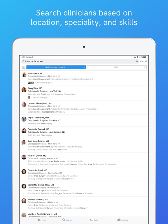 - Find clinicians based on specialty, location and clinical interests