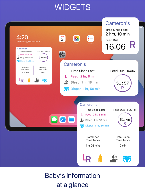 √ At a glance view of how long since baby last fed, next feed time and which breast to use next