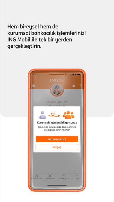 Kurumsal müşterilerimiz, ayrıca, yetki ve onayları dahilinde, ING Mobil uygulamasında onaya düşen bankacılık işlemlerini bildirimler üzerinden görüntüleyebilir ve işlemlerini onaylayabilirler.