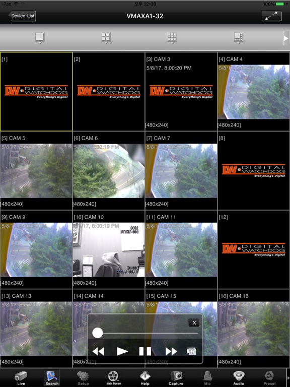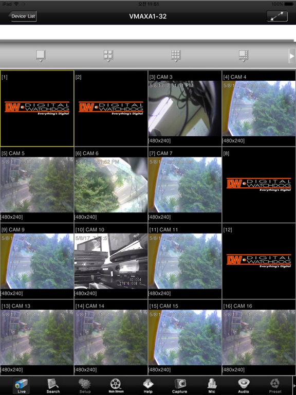 1. Watch live 1, 4, 9, 16, 32 camera channels