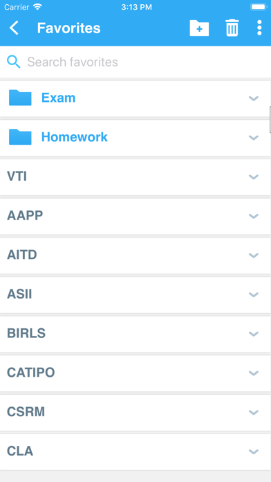 • ‘Favorites’ that allow you to create custom folders with lists of words.